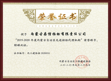 2019-2020年度內(nèi)蒙古自治區(qū)先進招標(biāo)代理機構(gòu)