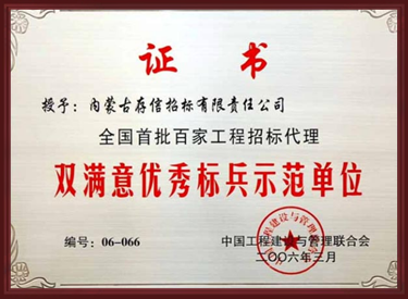 全國首批百家工程招標代理雙滿意優(yōu)秀標兵示范單位