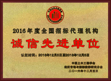 2016年度全國招標代理機構(gòu)誠信先進單位
